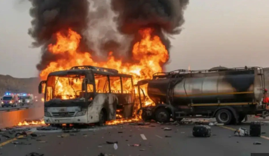 45 người tuvong khi xe buýt đ:â:m vào xe chở dầu rồi bốc c:h:á:y