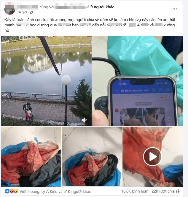 Đoạn clip ghi lại cảnh nam sinh bế bạn ném xuống hồ nhanh chóng lan truyền trên mạng xã hội, gây phẫn nộ và lo ngại về tình trạng bạo lực học đường.