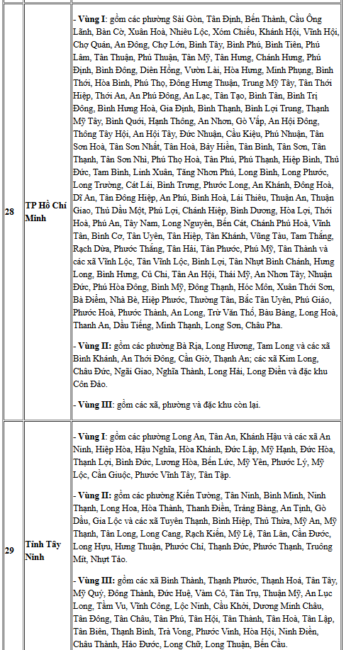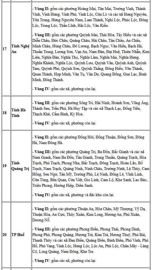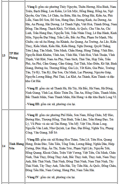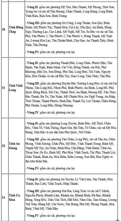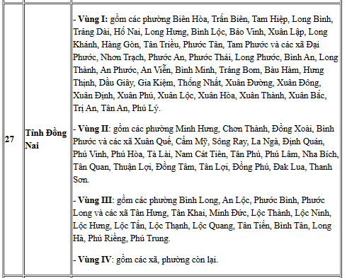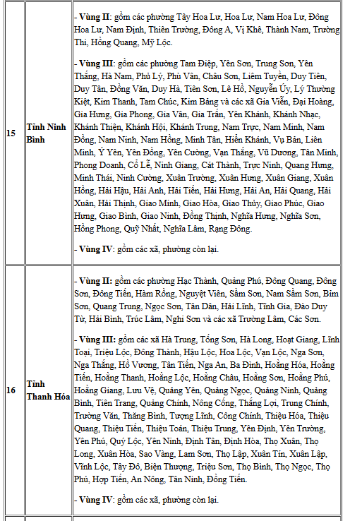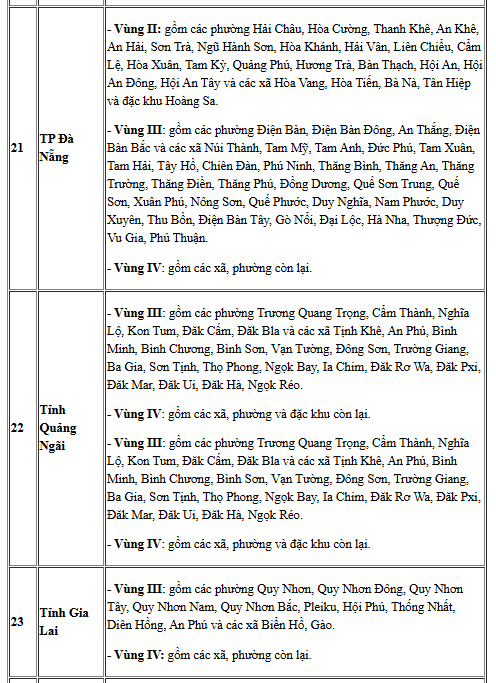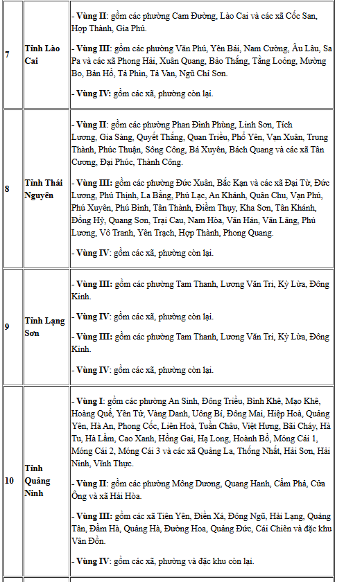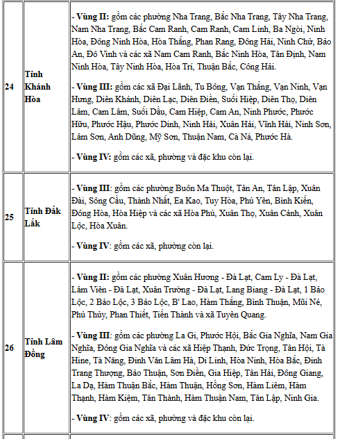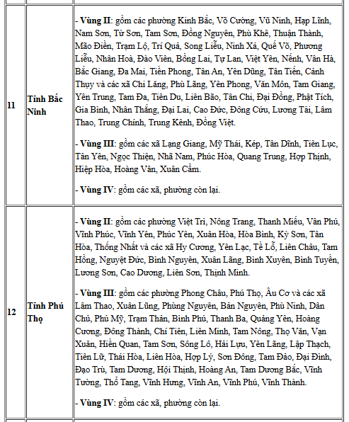 Danh mục địa bàn vùng I, vùng II, vùng III, vùng IV được quy định tại Phụ lục ban hành kèm theo Nghị định 293/2025/NĐ-CP.