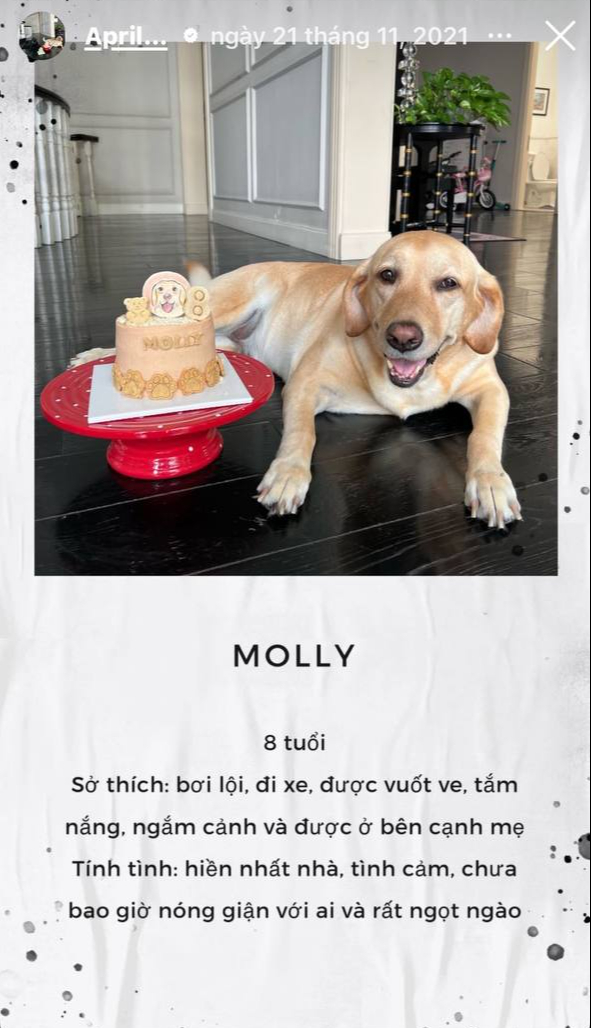 Chú cún Molly đã có một cuộc đời hạnh phúc, được yêu thương trong gia đình của Tăng Thanh Hà (Ảnh: Instagram nhân vật)