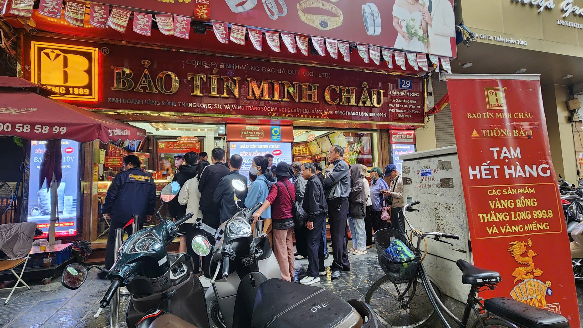 Nhân viên cửa hàng Bảo Tín Minh Châu cho biết, hôm nay cửa hàng bán tối đa 3 chỉ vàng/người. Cửa hàng buộc phải bán giới hạn số lượng do nhu cầu người dân vẫn tăng cao trong những ngày vừa qua.
