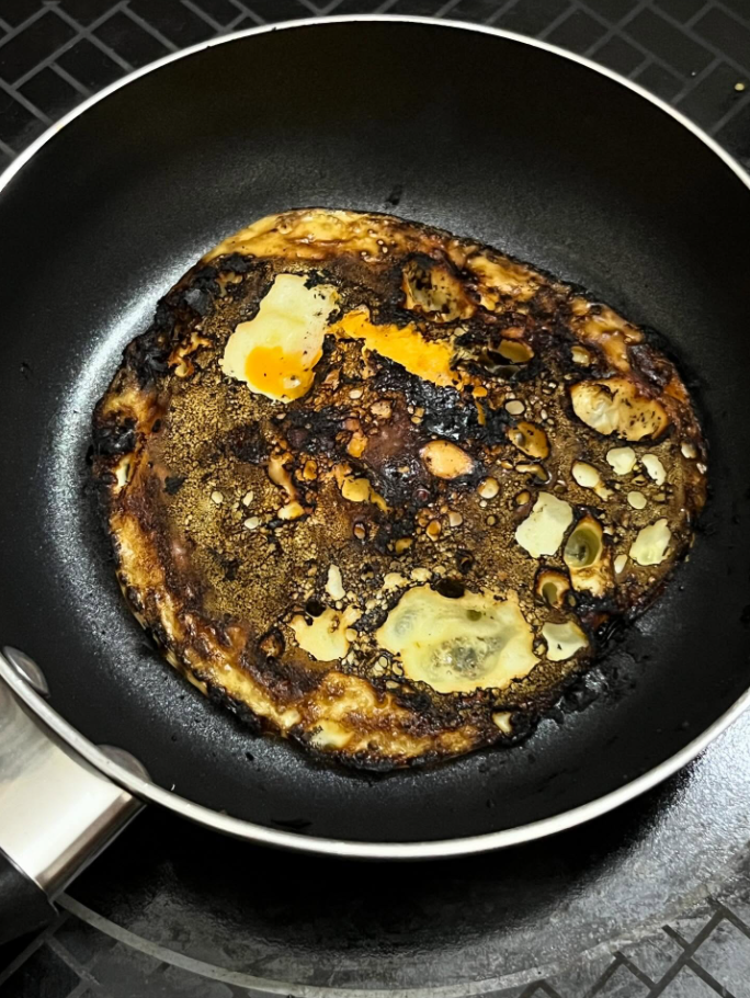 Không rán trứng ở nhiệt độ cao đến cháy cạnh.
